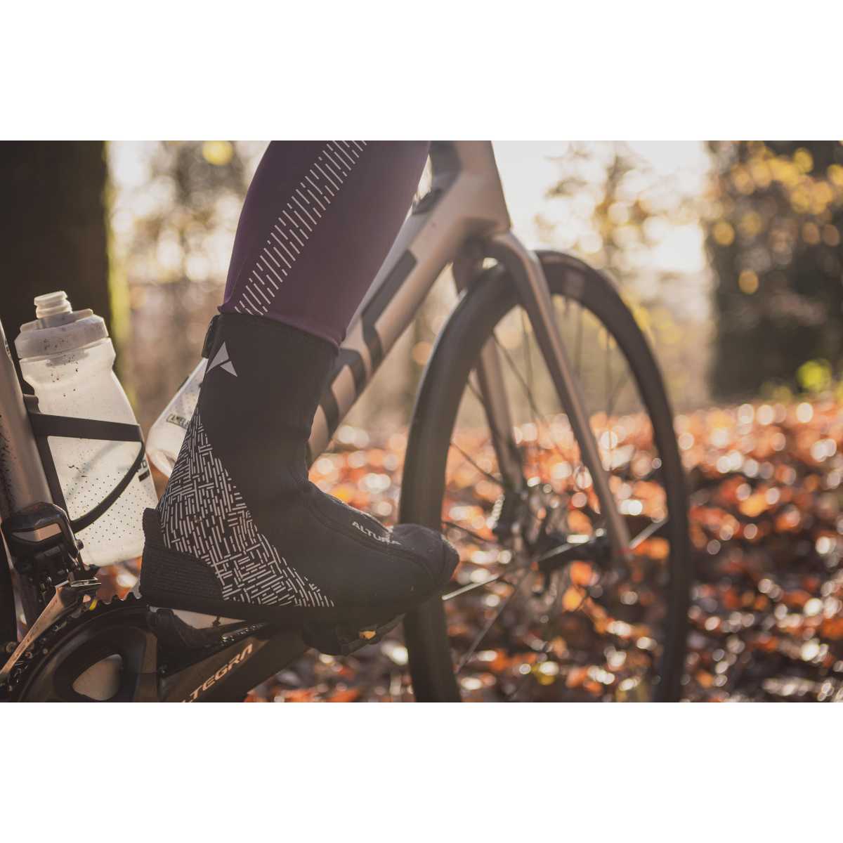 The Altura Windproof Thermostretch Unisex Cycling Overshoes are designed for when the weather is doing its best to stop you from getting out on the bike. With its 2.5mm neoprene these overshoes provide a great warmth to weight ratio and excellent durability too, thanks to the reinforced sole. The strategically placed reflective print will help you be seen in lower light conditions and a handy zip fastener makes it easy to get these fitted overshoes on and off.