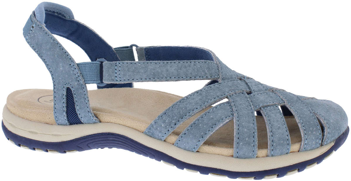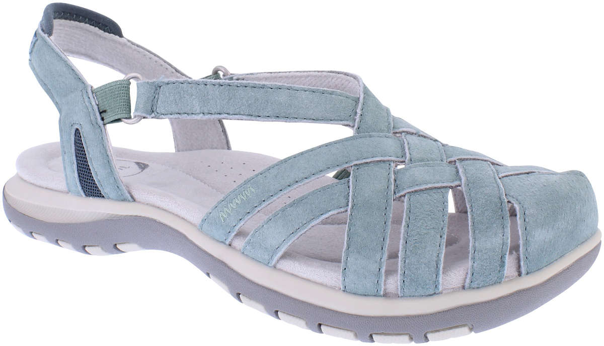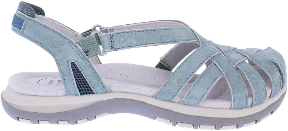 Alexa is half shoe, half sandal making it ideal for exploring. Its full front offers excellent protection whilst the cutouts allow the freedom of a sandal. Its suede upper allows breathability and softly molds to your foot whilst the elasticated back strap offers extra flexibility to fit. Its impertex lining wicks away moisture and allows your sole to breath. The multi-density latex cushioning enhances comfort and protects your joints and the extra reinforced arch support improves anatomic fitting. The sole is a flexible TPR to provide non-slip movement and the angled toe kick promotes and boosts the natural walking motion.