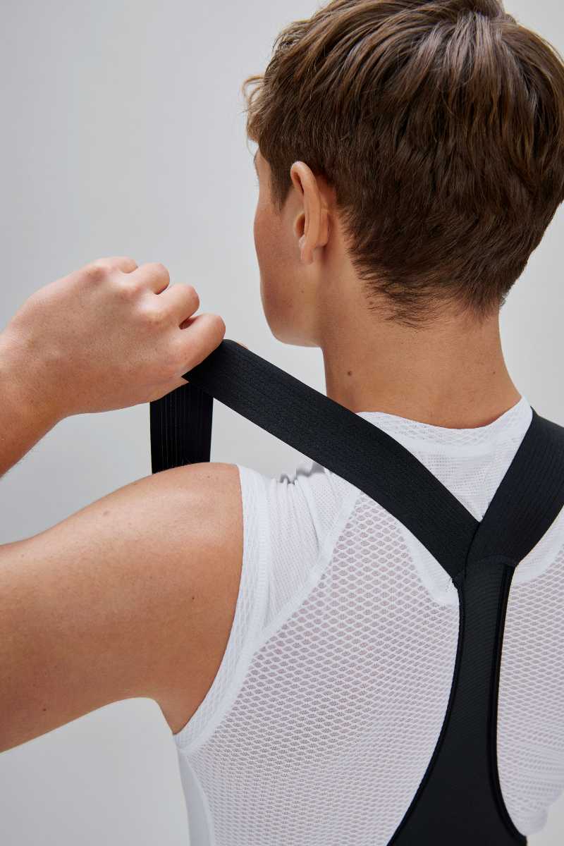 Highly elasticated crossover suspenders make it easy to pull the bibs down for mid-ride calls of nature (we recommend crossing the suspenders on the front for most practicality). Raw cut edges at the leg cuff enhance the minimalist feeling, and silicone dots on the inner help keep the legs firmly in place.