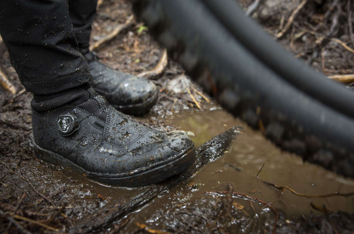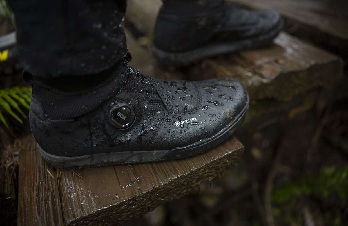 - GORE-TEX® sock-style liner with a stretchy ankle collar shuts out water to help riders focus on their flow